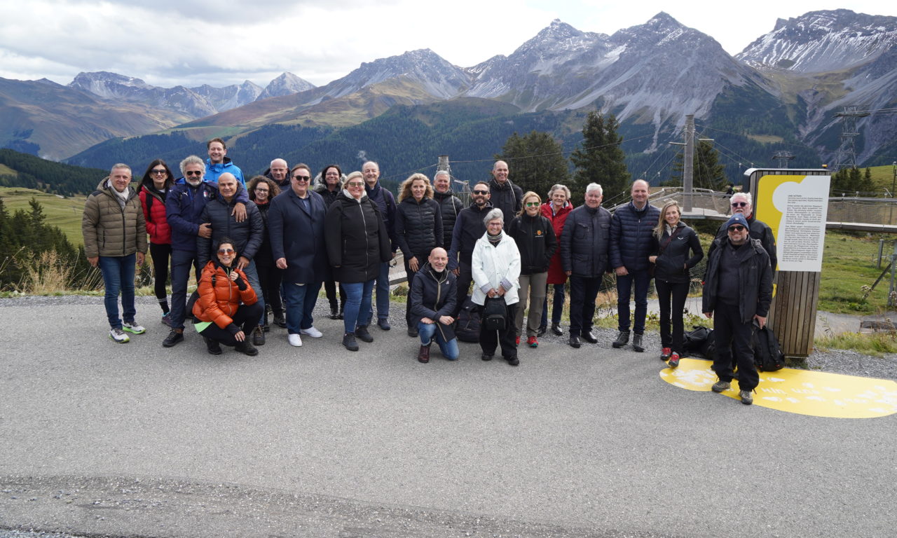 Am Treffen vom 26. bis 28. September erhielten die Teilnehmenden vielfältige Einrücke von der Partnerstadt Chur. Der Ausflug nach Arosa führte zuerst in den Bärenpark. An der spannenden Führung mit vielen Informationen zu den Tieren wurde den Gästen auch erläutert, dass der Park auf Churer Boden steht und die Stadt dem Projekt im 2017 zugestimmt habe. Anschliessend ging es hoch zum Weisshorn mit einmaligem Panoramablick, welcher sich mit einem herrlichen Regenbogen von seiner spektakulären Seite zeigte. Anschliessend ging es zu Fuss zur Alpkäserei in Maran – ebenfalls auf Churer Boden – und nach einem gemeinsamen Nachtessen dann in der gemütlichen Stiva Retica der Rhätischen Bahn wieder zurück nach Chur. Während am Samstagmorgen die bereits erwähnte Bürgermeister-Sitzung abgehalten wurde, wurde es am Nachmittag dann ausgelassener. Auf einem Hossamobil konnten sich die Gäste unter die feiernde Menge mischen und mit Musik aus allen sechs Ländern mittanzen. Mit vielen Erinnerungen und Eindrücken wurden die Teilnehmenden am Sonntag dann vom scheidenden Jumelage-Präsidenten verabschiedet.
